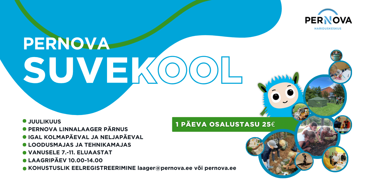 SUVI LÕBUSAKS JA SISUKAKS - REGISTREERI LAPS PERNOVA SUVEKOOLI! Ootame 7-11. aastaseid lapsi juulikuus PERNOVA HARIDUSKESKUSE SUVEKOOLI. Suvekoolis osaleb laps põnevates avastusi täis tegevustes, ...