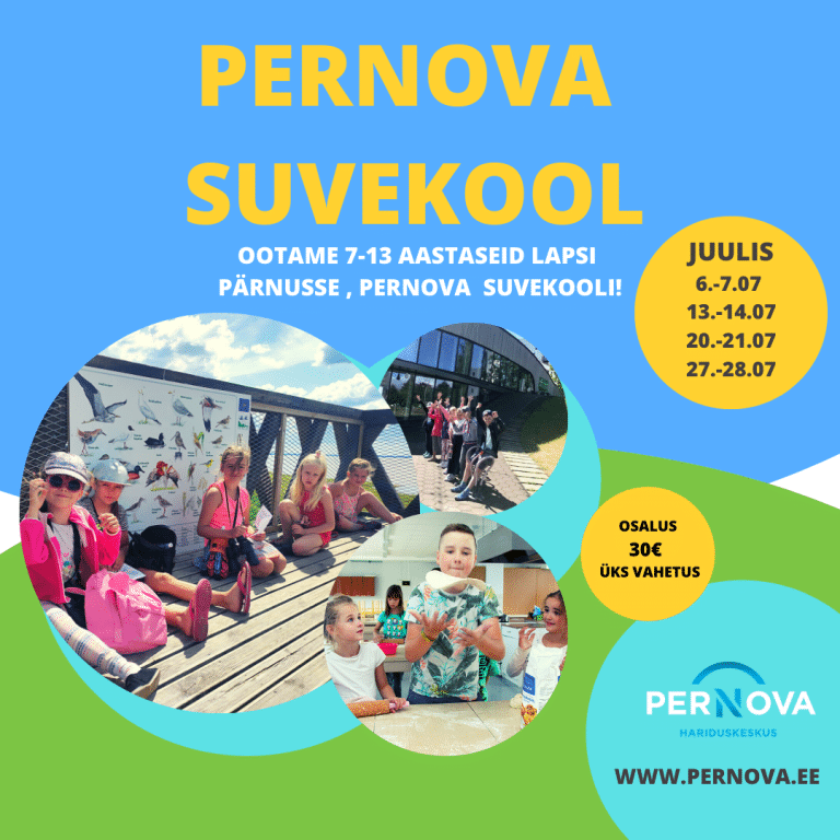 PERNOVA HARIDUSKESKUSE SUVEKOOL! Ootame juulis 7 -13 aastaseid lapsi kahepäevasele LOODUSE ja TEHNIKA SUVEKOOLI, kus pakume põnevaid tegevusi ja uusi kogemusi. Saame koos matkata, kokata, ...